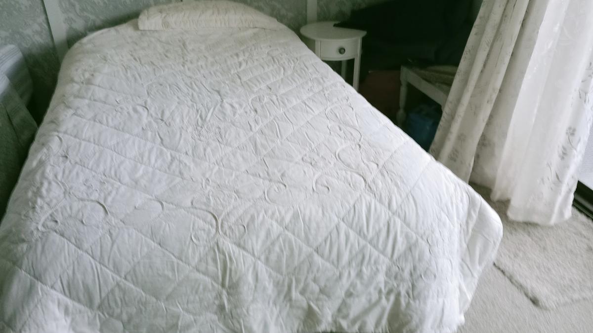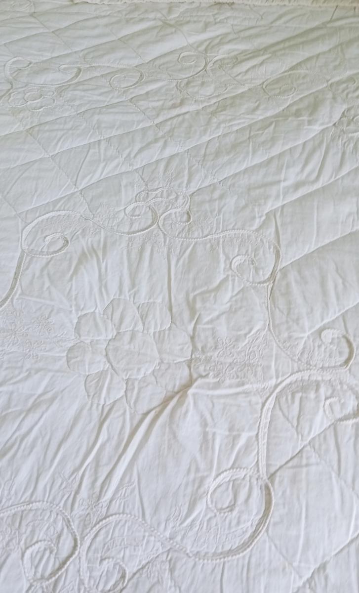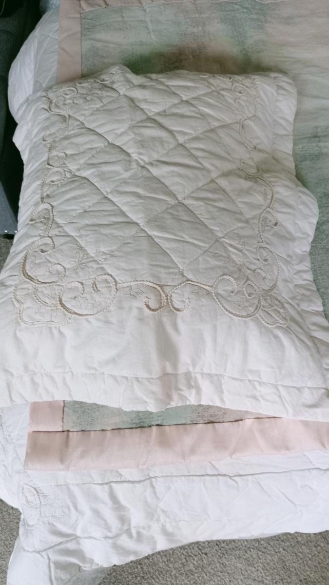 Twin single embroidered coverlet in a cream colour with matching pillowcase. Good order. They have been packed in plastic so no marks... Smoke free house... There are two of these so price is for the pair