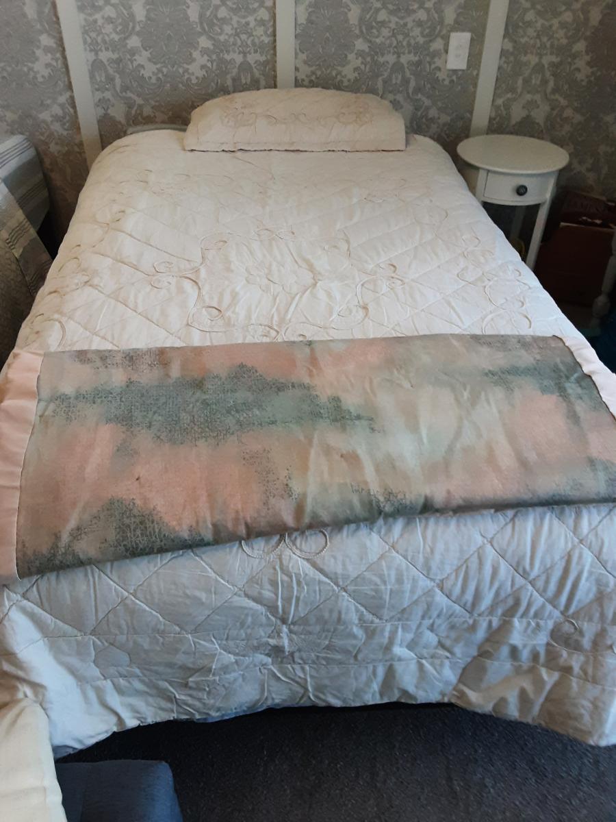 Simplistic quilts x2 handmade, has a light inner, Hand stitching on side of one needs fixing but nothing bad.King single or single bed size