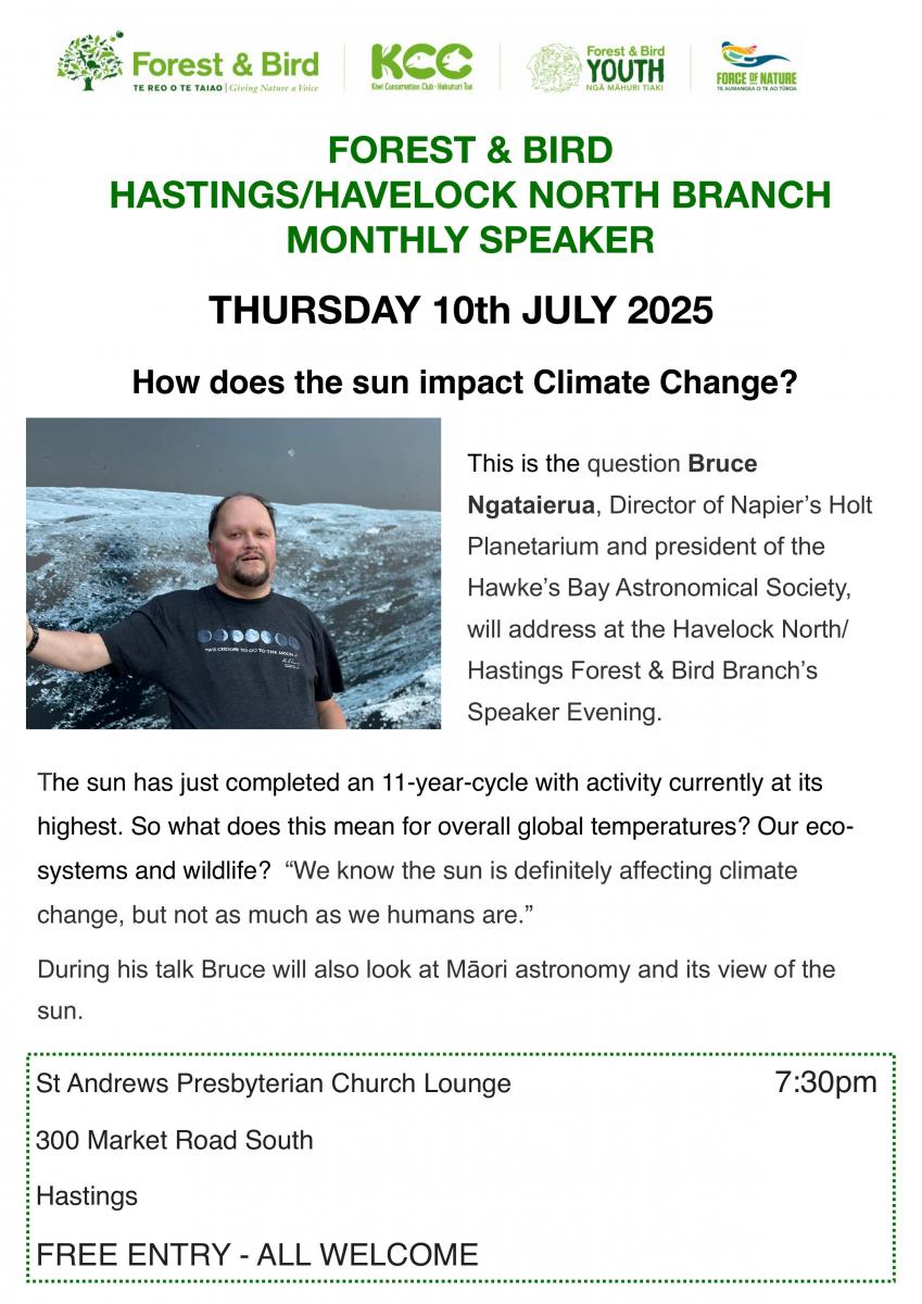 will address at the Hastings-Havelock North Forest & Bird's Branch