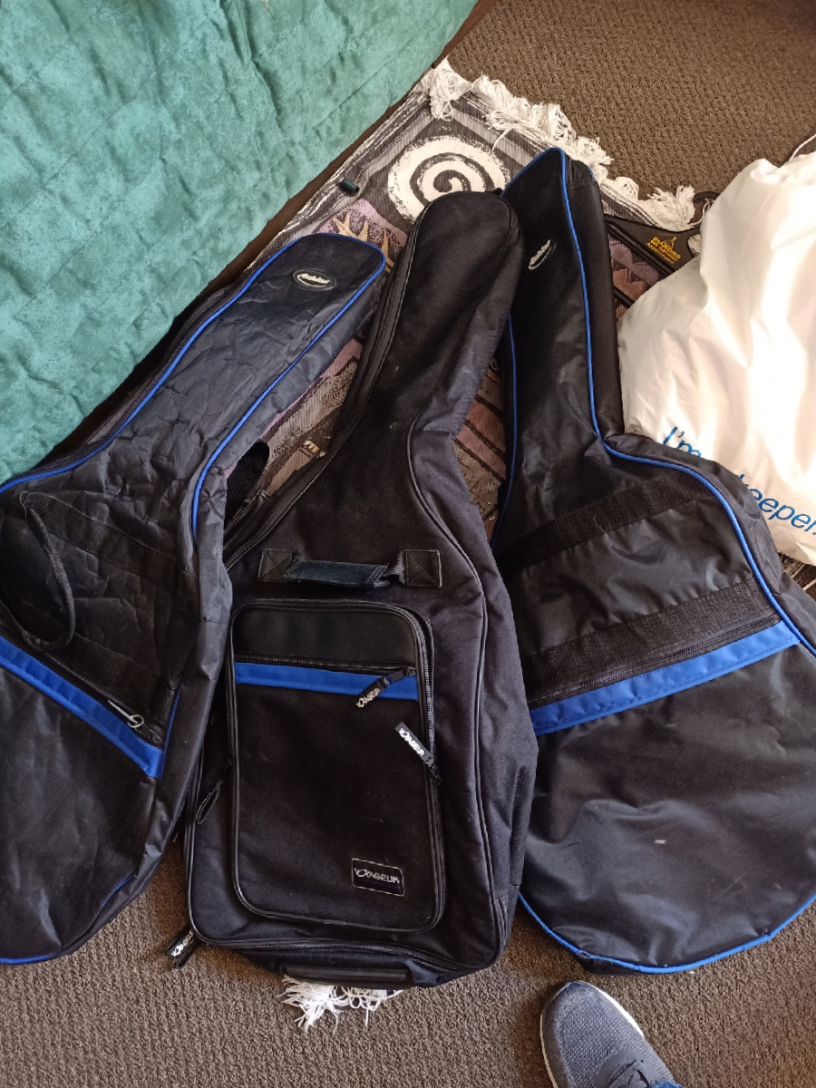 I have 3 soft cover guitar cases free . My son has left home and left these behind! 2 Ashton one Voyageur.