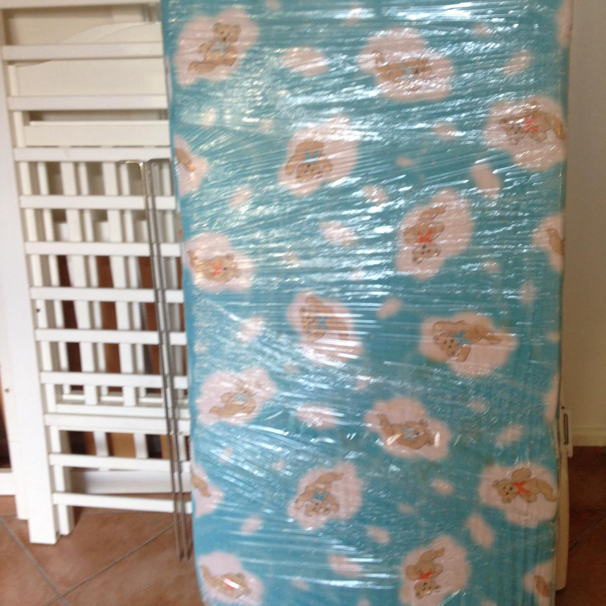 Clean cot mattress it's been wrapped and kept in dry place, the cot is free because I'm not sure it has all the bolts but I think it most probably does but easy to get from Bunnings