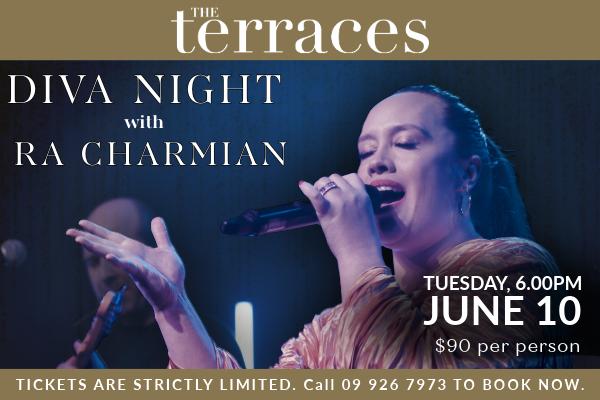 Enjoy a delightful 3-course set menu dinner for $90 per person. Ra, known for her captivating international performances – and that familiar voice from The Breeze … View moreJoin us at The Terraces Restaurant for a special live jazz concert with award-winning vocalist Ra Charmian on Tuesday, June 10th.