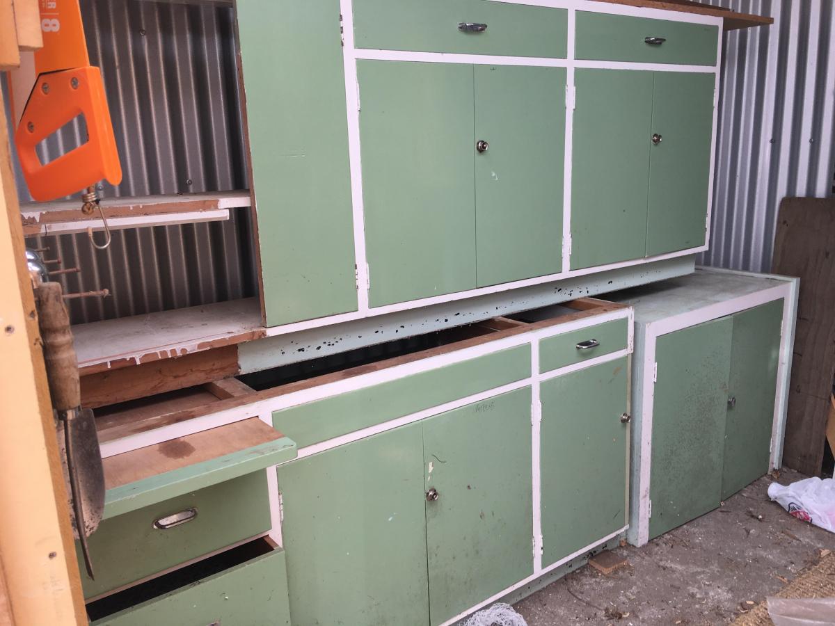 There are no bench tops on the2 larger units but I have a 2.4M X 1,2M sheet of 10mm ply available to make tops