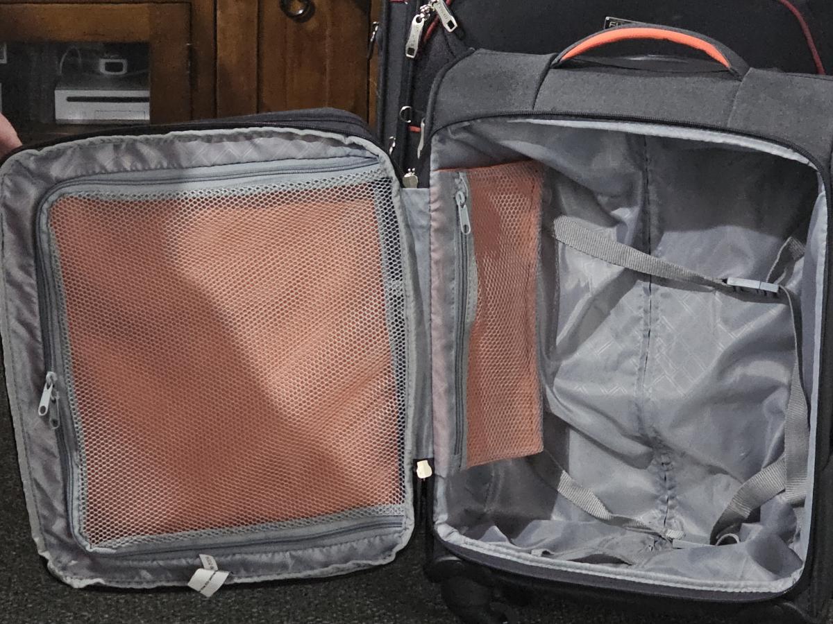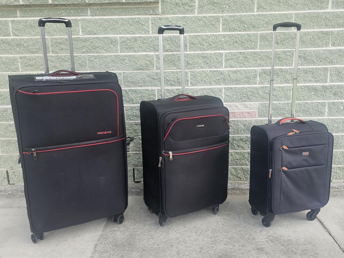 2 x black with red piping, 1 x black with orange piping - all in very good condition. All have TSA locks. No rips or tears.