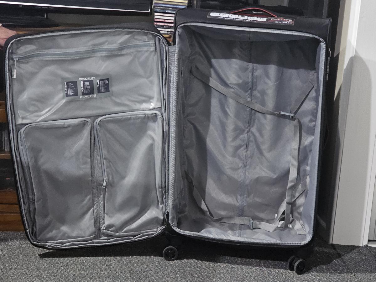 3 x Flylite suitcases. All have expandable section (sizes listed are unexpanded).