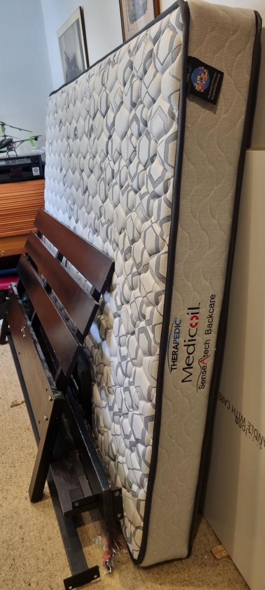 Timber headboard frame & Base - timber slats - Excellent mattress hardly used as was bed for spare room- Therapedic Medicoil SenseAtech Backcare mattress - its really comfy!!! Less than 2 years old - mattress alone worth over $300 new- clean non smoking house -FIFS - on other platforms as … View moreTimber headboard frame & Base - timber slats - Excellent mattress hardly used as was bed for spare room- Therapedic Medicoil SenseAtech Backcare mattress - its really comfy!!! Less than 2 years old - mattress alone worth over $300 new- clean non smoking house -FIFS - on other platforms as looking for quick result and needing the space - other bed already moved in.... - MUST PICK UP will send cell ph details as well as bank info to winner if not ca$h - based Naenae.