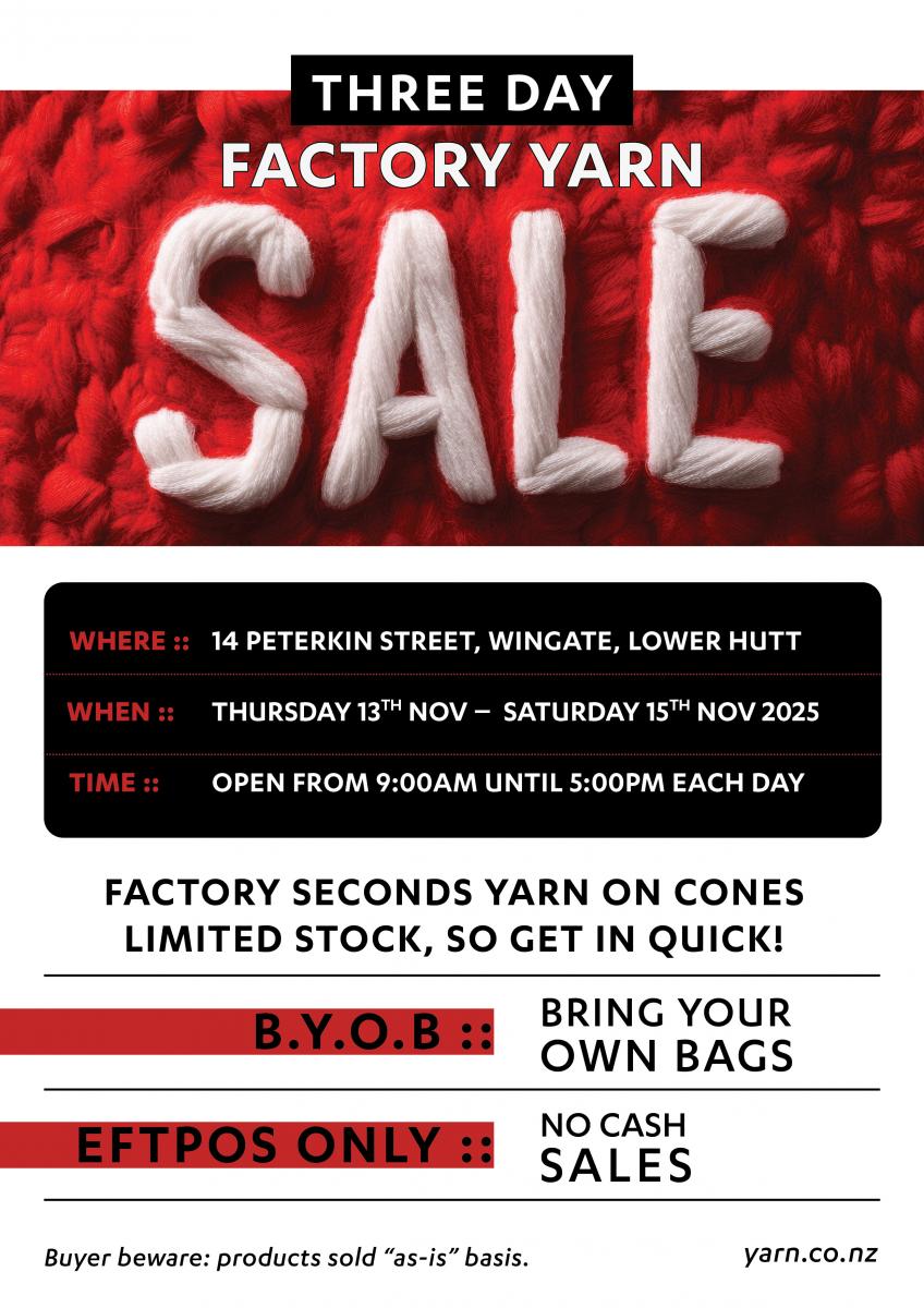 Lock-in the dates for this years 3 day only Factory Yarn Sale.