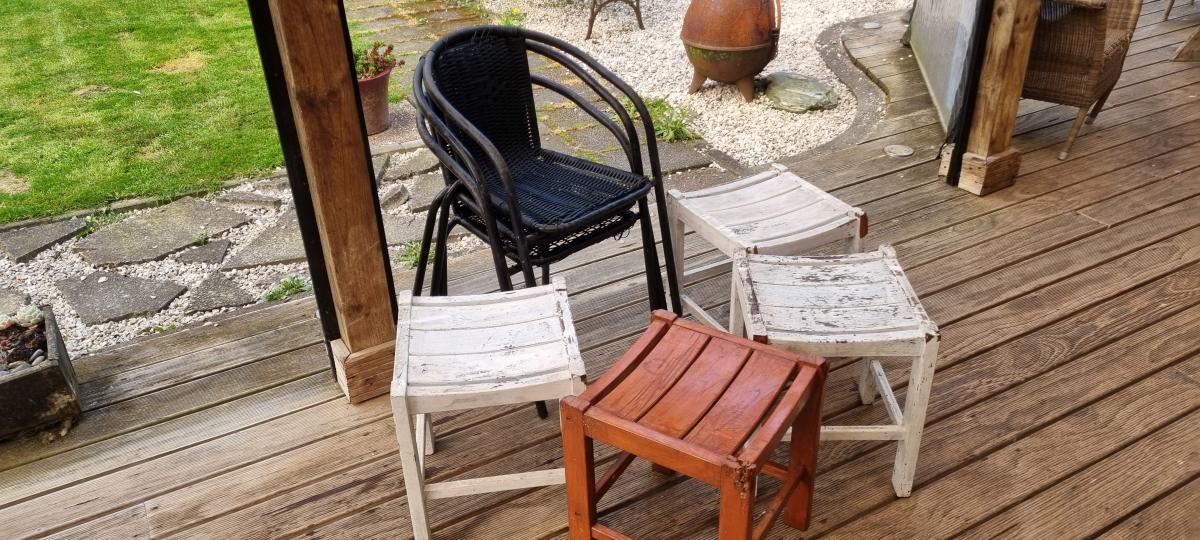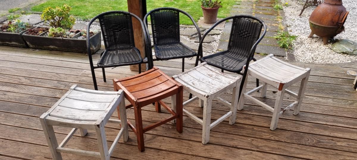 Got folks coming for the holidays? need more seats on the deck or patio? MUST BE PICKED UP SAT 11th (finally get a day at home from work) - I need the space for other things ASAP - as is - FIFS - set of 3 stackable chairs plastic wicker over steel tube and set of 4 timber stools - they have had a … View moreGot folks coming for the holidays? need more seats on the deck or patio? MUST BE PICKED UP SAT 11th (finally get a day at home from work) - I need the space for other things ASAP - as is - FIFS - set of 3 stackable chairs plastic wicker over steel tube and set of 4 timber stools - they have had a good life - and theres more life in them - time to let them help someone else