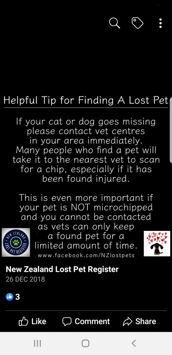 If you see her, please contact me 0276888006 or bring her to … View moreUpdate: this morning a lady saw her at Vicente ST/Cambridge Terrace, Waterloo area, but I can't find her, please take a minute to check your shed and garage.
