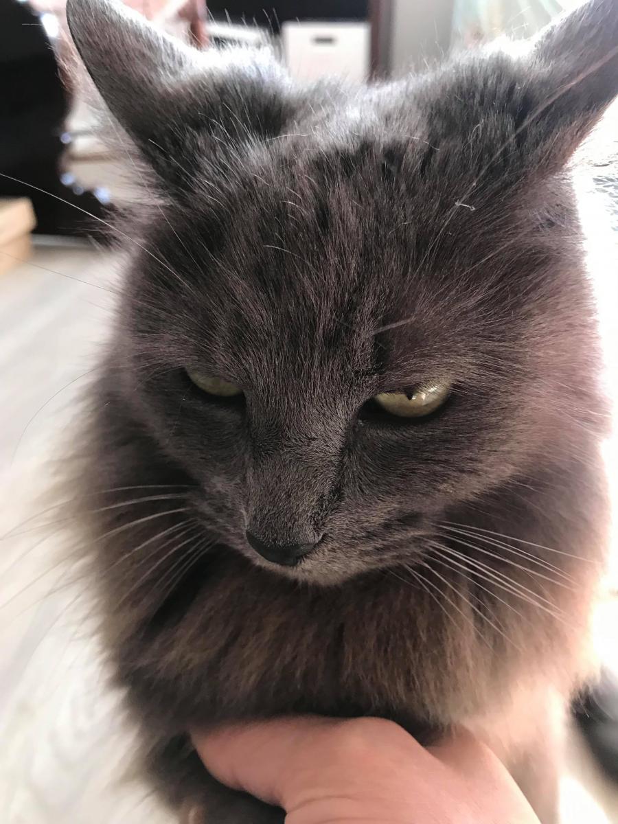 April is 6 years old, female, grey long hair, microchipped, desexed.