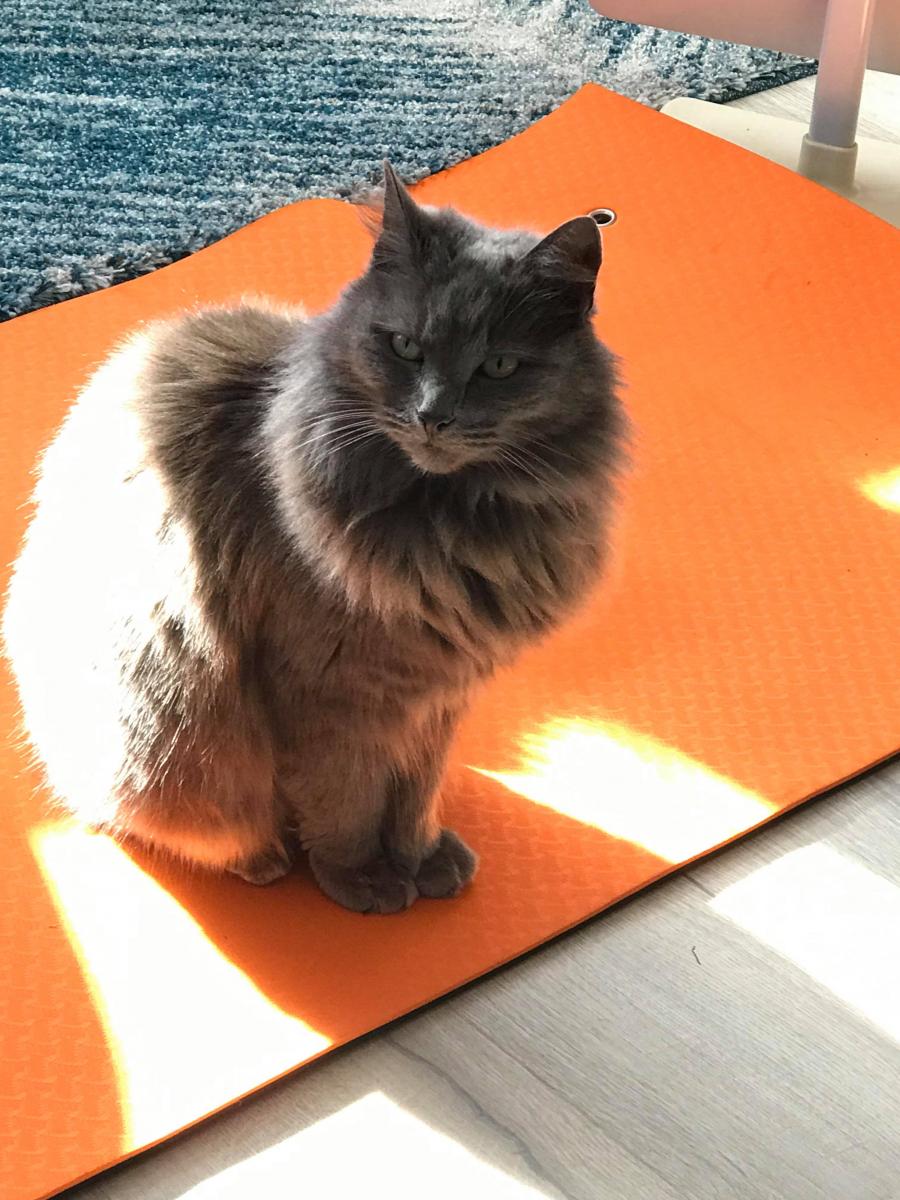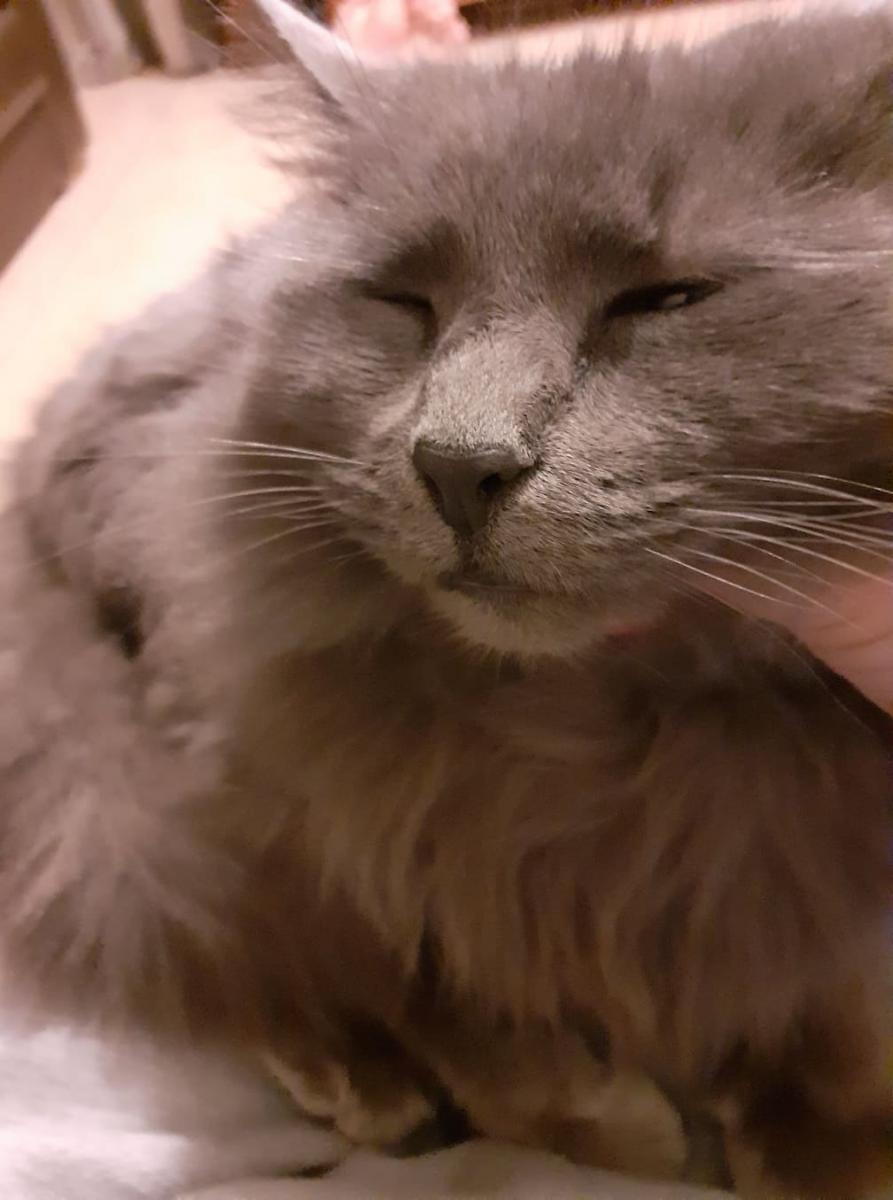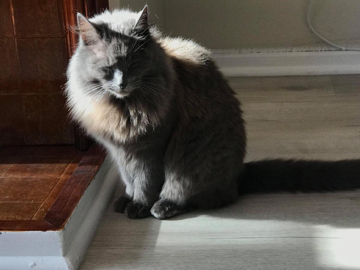 April is 6 years old, female, grey long hair, desexed, microchipped