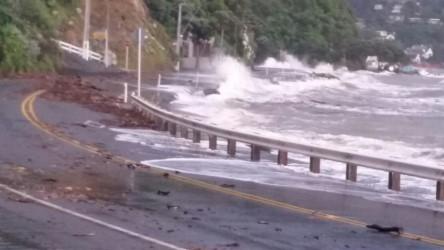 Wainuiomata Hill Road: both southbound lanes to Wainuiomata are open. On the sided of the road there is a slip and a downed pole, so be cautious.
