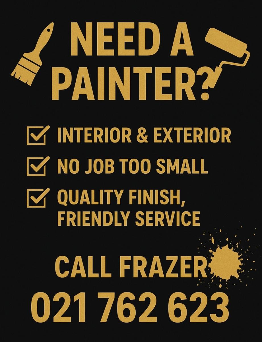 If anyone is on the look out for a painter who is top notch in his field, please reach out to local nui man Fraser . Free quotes and no job too small