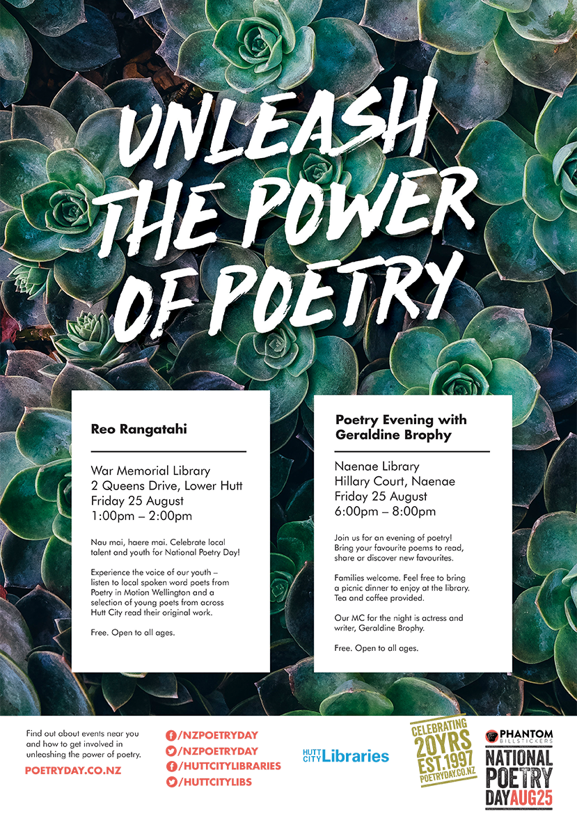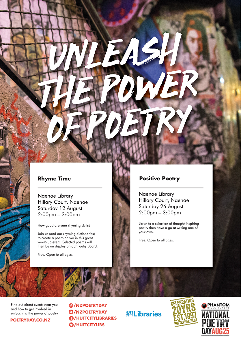 Unleash the power of poetry and celebration National Poetry day (Friday 25 August) at Hutt City Libraries!