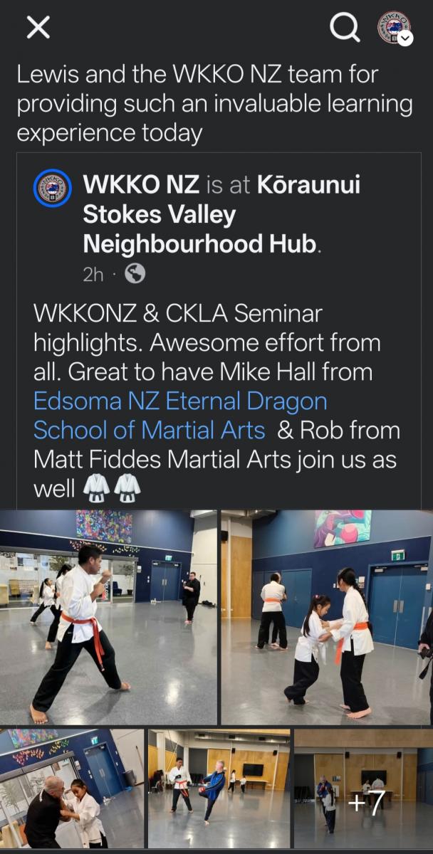 WKKONZ & CKLA Seminar highlights. Awesome effort from all. Great to have Mike Hall from Edsoma NZ Eternal Dragon School of Martial Arts & Rob from Matt Fiddes Martial Arts join us as well 🥋🥋