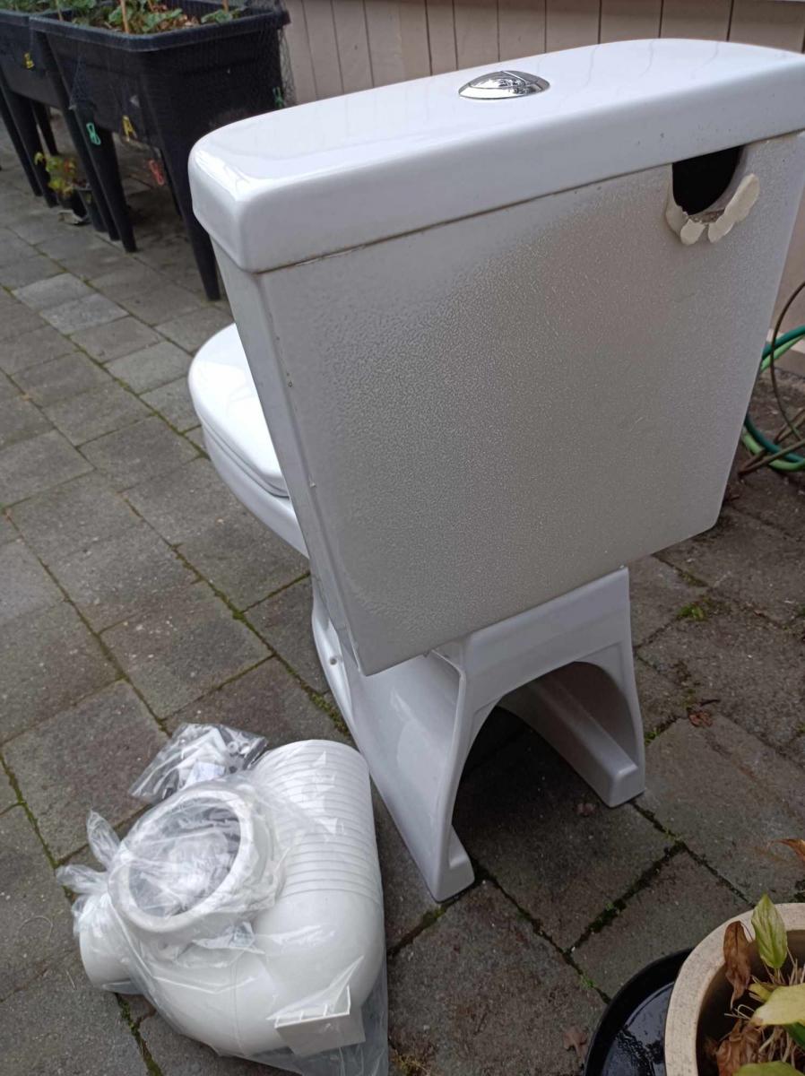 A good working toilet. We just needed an extra high one. Free for plumbing in or a planter.