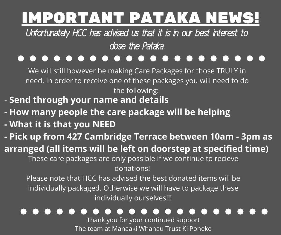 We will now be operating non-contact support system, care packages are available to those who are truly in NEED.