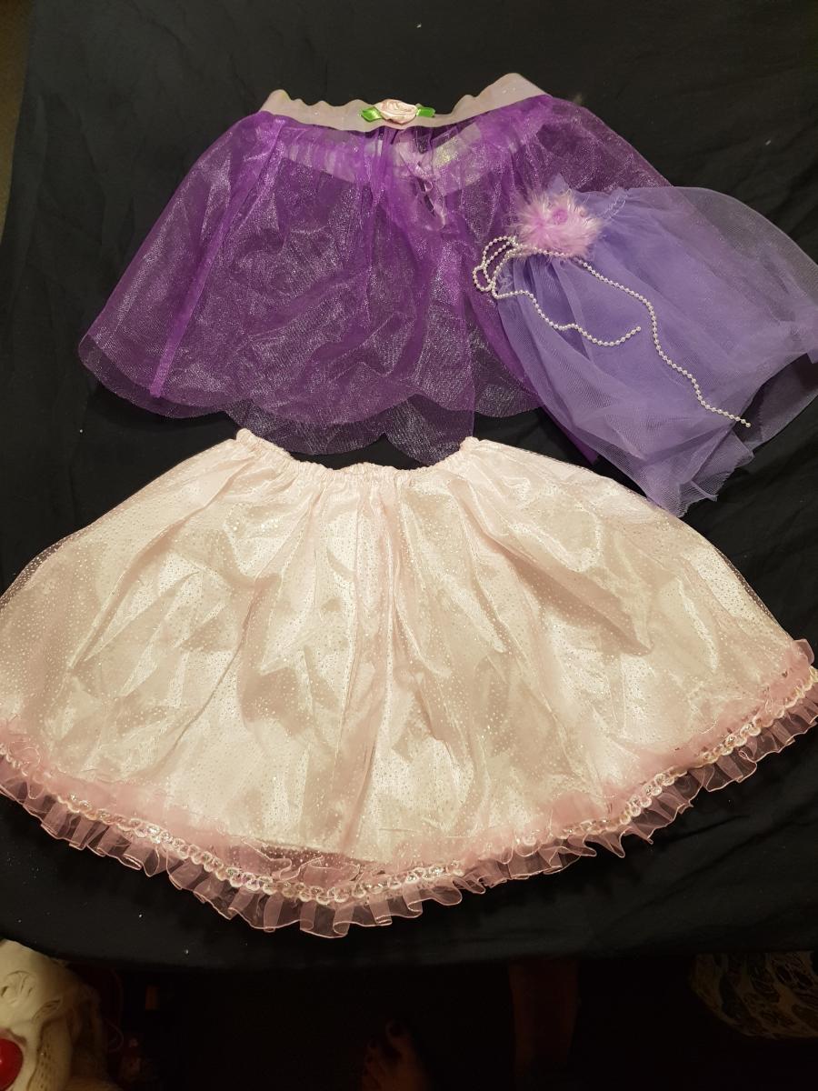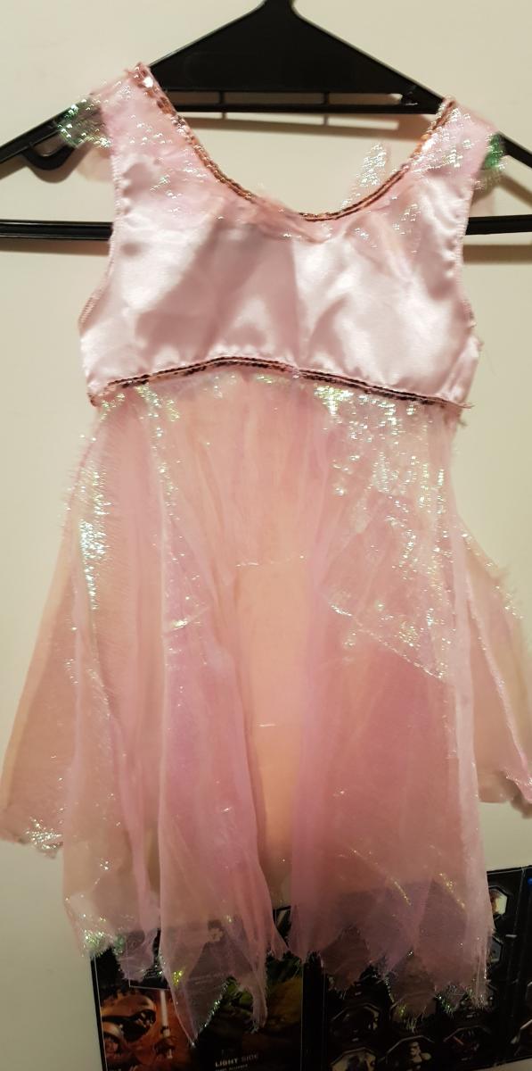 Includes 1 dress, 3 skirts,1 bakers outfit with hat and large wings too.and pink sarong. Ages 4-6