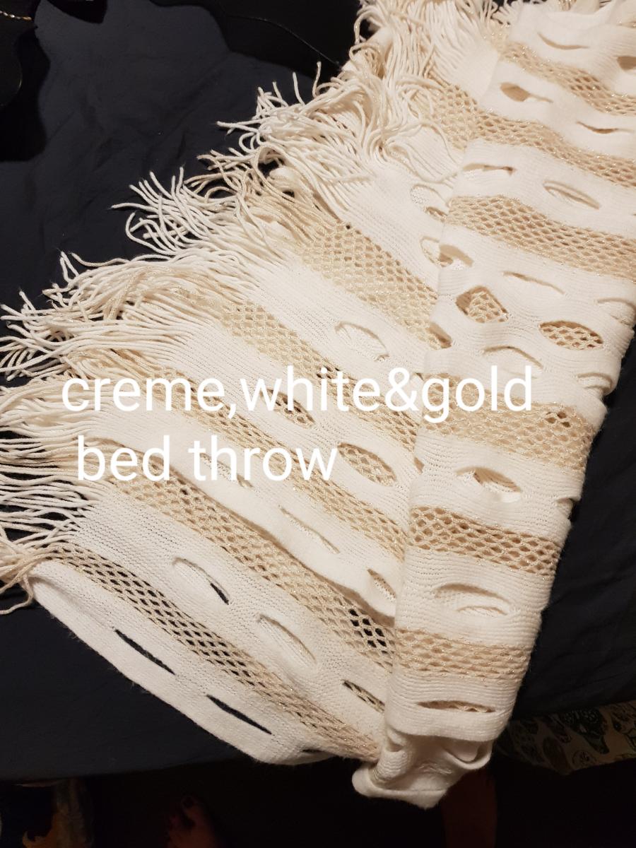New ,gold creme n white wool throw for bedroom ,pikup by sunday plse. Petone