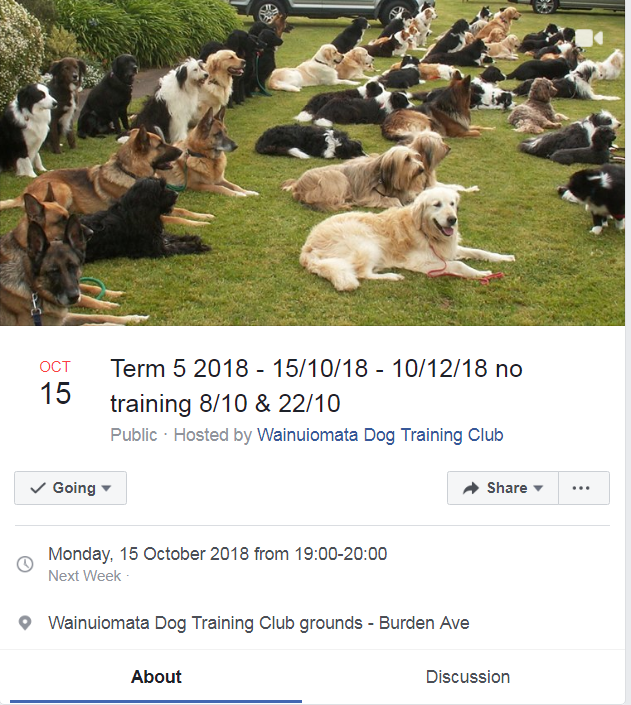 Do you know that Wainuiomata has a Dog Training Club? The club works with the owners and dogs at all levels from beginning basics through to Canine Good Behaviour and competition work. A small group of passionate trainers offer classes to any and all who wish to join the club. The term is 8 weeks of training for an hour on Monday nights from 15 October 2018. Check us out on Facebook under Wainuiomata Dog Training Club