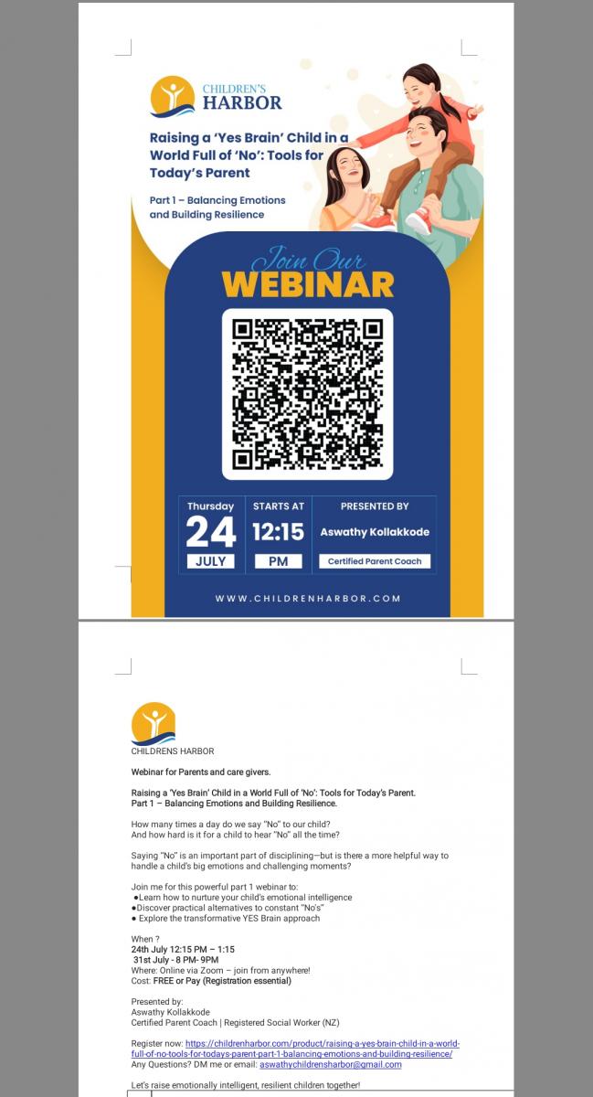 I am running a webminar on 24th July next week for you. Come and join. Discover what's Yes Brain in a simple way and understand how can we handle big emotions of our lovely children with out getting in to fights. Cost effective or do not pay if it's hard for … View moreHi parents and caregivers,