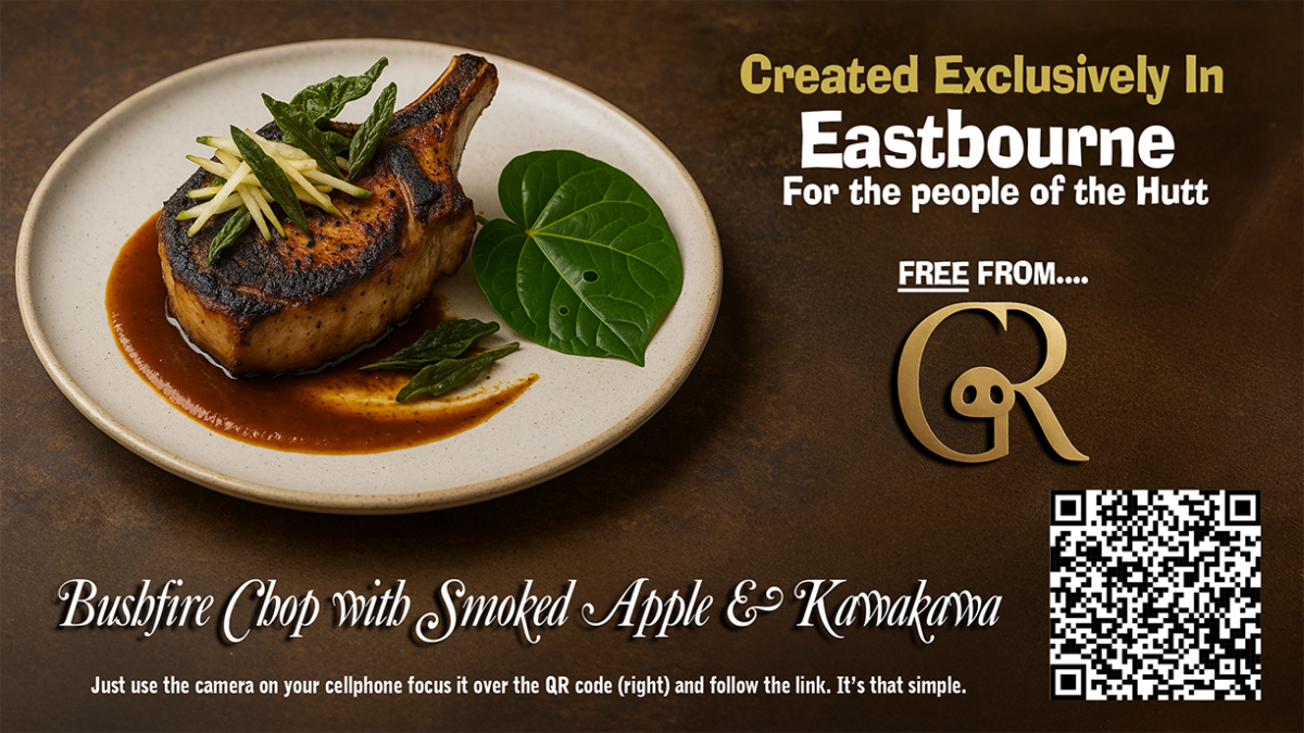 A bold, smoky celebration of New Zealand flavour — this seared pork chop is infused with native kawakawa ash and paired with a silky smoked apple butter that delivers real depth and satisfaction. It’s … View moreA Unique New Taste from Eastbourne