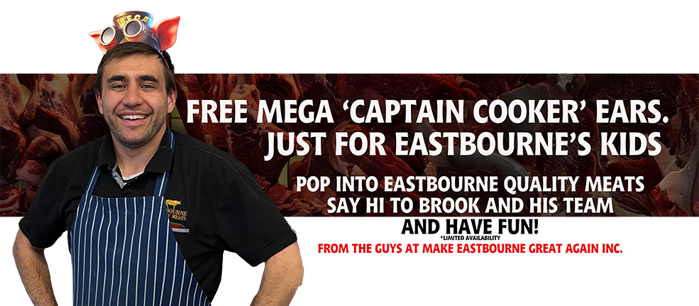 From Brook and the Team at Eastbourne Quality Meats for the MEGA-Mites, FREE Fun Ears, celebrating our mascot 'Captain Cooker'