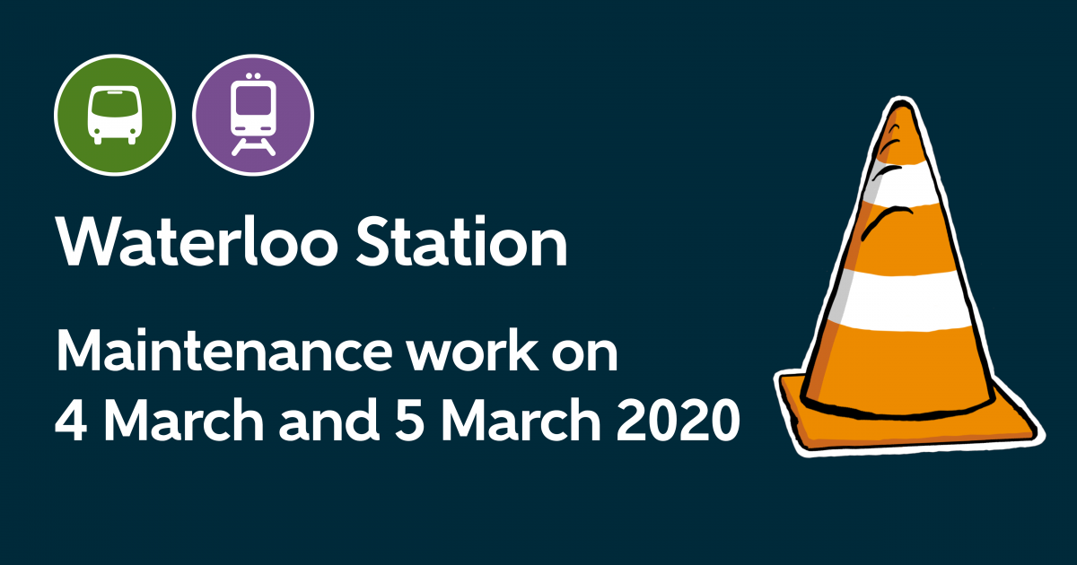 On 4 March and 5 March 2020, between 7am and 6pm, we’ll be doing some maintenance and resurfacing work in the bus stop area at Waterloo Station, Cambridge Terrace side.
