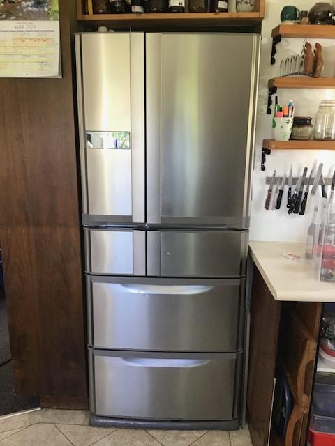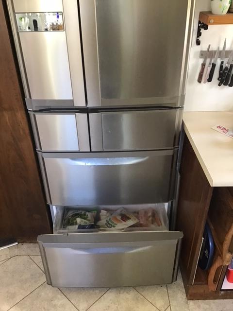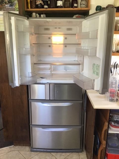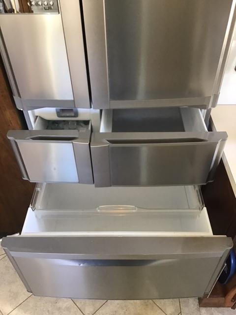 This is the ulitmate in a fridge, with freezer, icemaker, vegetable bottle draw, meat draw. adjustable shelves. Small damage on door closure, does not effect doors closing well. $5k new