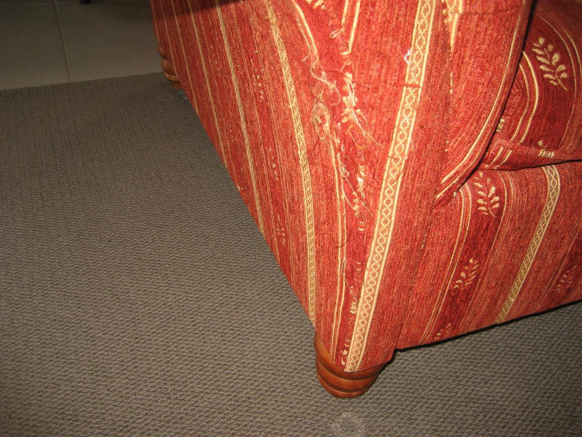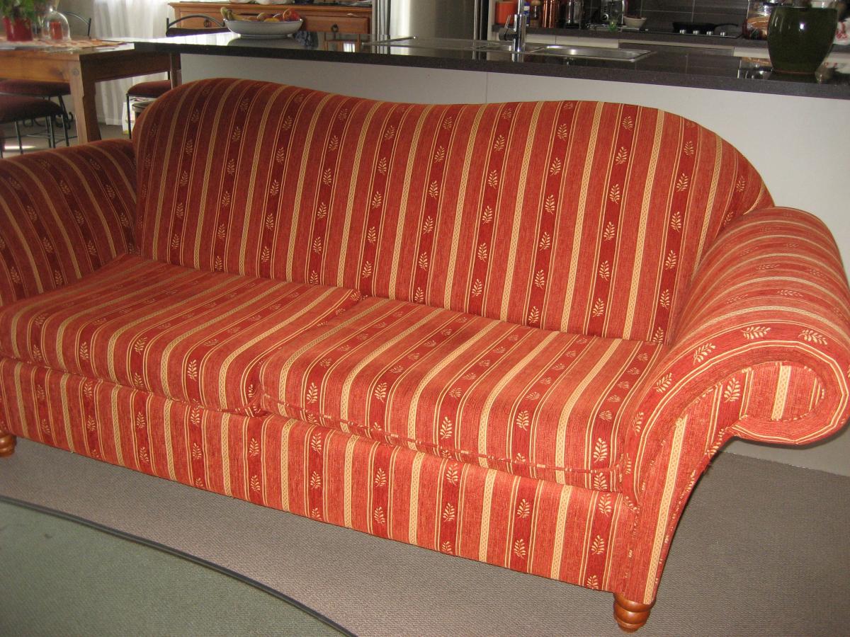Rust dark orange velour fabric with a gold patterned stripe woven through it. There is no fading as they have always been covered to keep clean. In good condition apart from some fraying on corner of one sofa caused by cat scratching.Sturdy construction and NZ made. Three seater is 2150 length x… View moreRust dark orange velour fabric with a gold patterned stripe woven through it. There is no fading as they have always been covered to keep clean. In good condition apart from some fraying on corner of one sofa caused by cat scratching.Sturdy construction and NZ made. Three seater is 2150 length x 890 mm width, 2 seater is 1800 mm length x 870 mm width. Pick up is from Snells Beach. Please phone Rose 09 4255547 or 021 216 4867