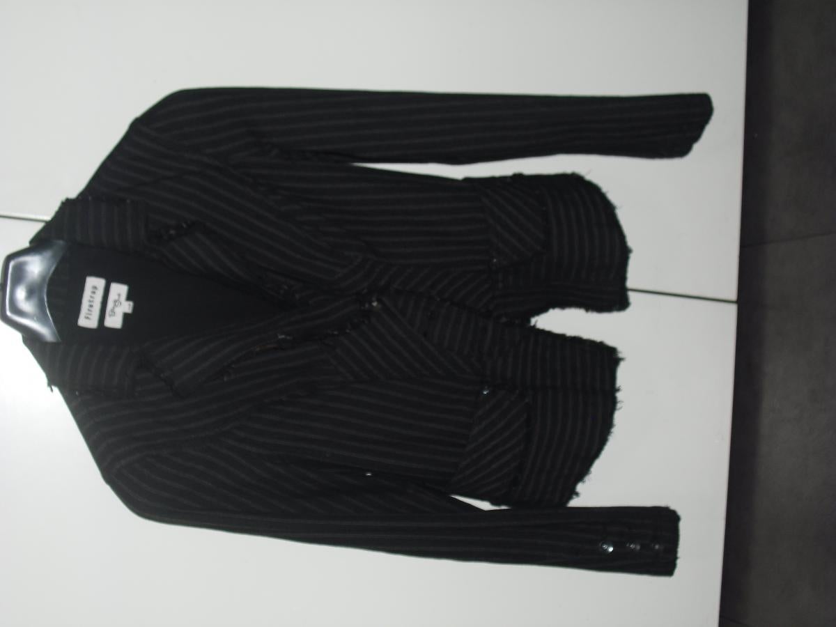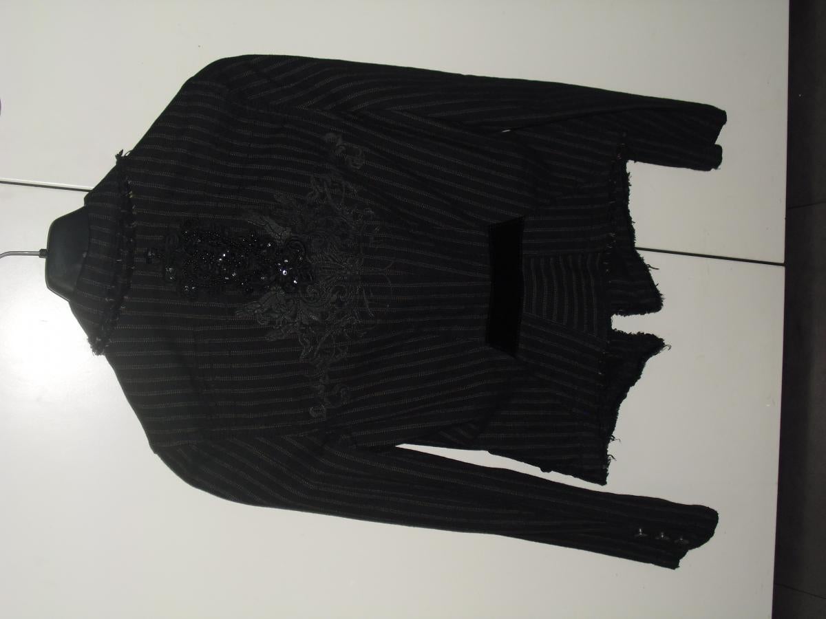 Early 2000's Small Firetrap Black Seal black pin striped jacket. Has frayed look edges and a gorgeous motif with beads and sequins on the back. 3 buttons at bottom of each sleeve. Cost over $200.00, worn once and now far too small. Looking for $25.00. Lovely jacket for night's out. … View moreEarly 2000's Small Firetrap Black Seal black pin striped jacket. Has frayed look edges and a gorgeous motif with beads and sequins on the back. 3 buttons at bottom of each sleeve. Cost over $200.00, worn once and now far too small. Looking for $25.00. Lovely jacket for night's out. Was my daughter's price and joy.