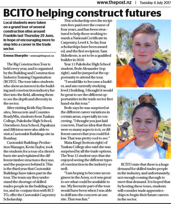 Customkit Buildings again participated in BCITO's Construction Tour where students from local schools got a 'taste' of the many opportunities out there in the construction industry.