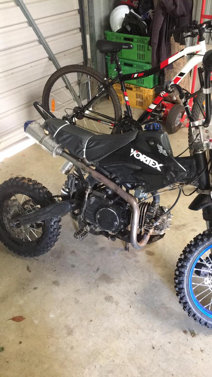 Still needs on/off switch witch will only cost the new buyer $10 maximum also has gable ties to hold seat in place brand new tyre brand new filter good solid bike that my kids loved but grew out of selling as is where is