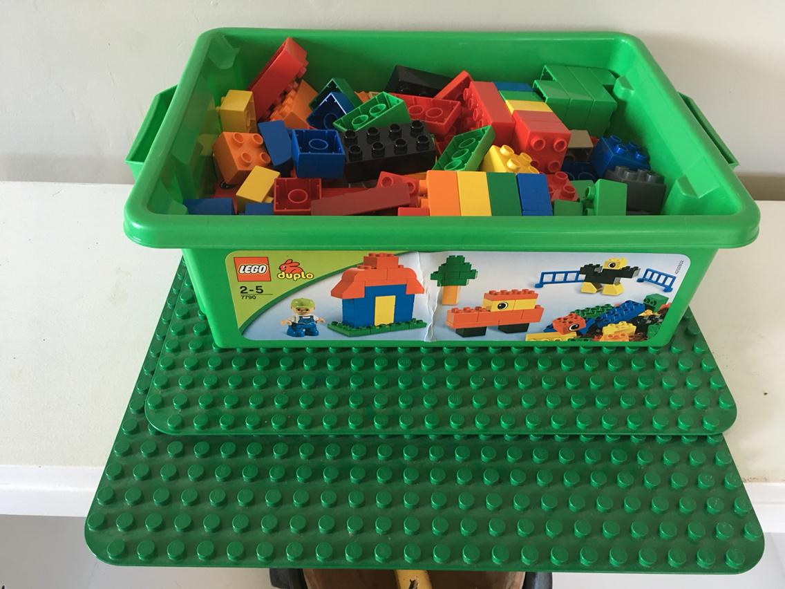 Great condition LEGO duplo blocks in original container plus additional LEGO base plates.
