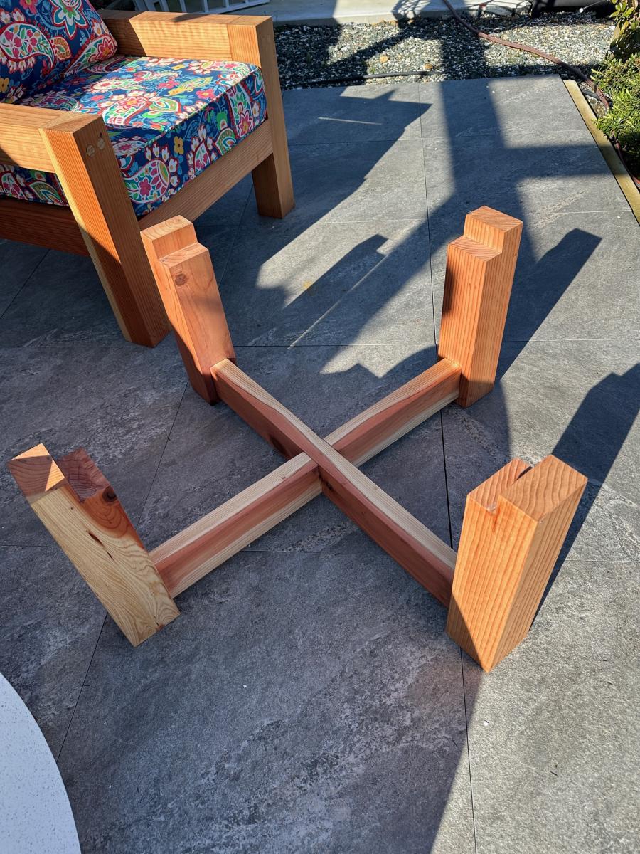 The table is a similar story. I had a tabletop from another table that I built the frame to fit around. Again, from Redwood, although again it can be from any wood you'd like.