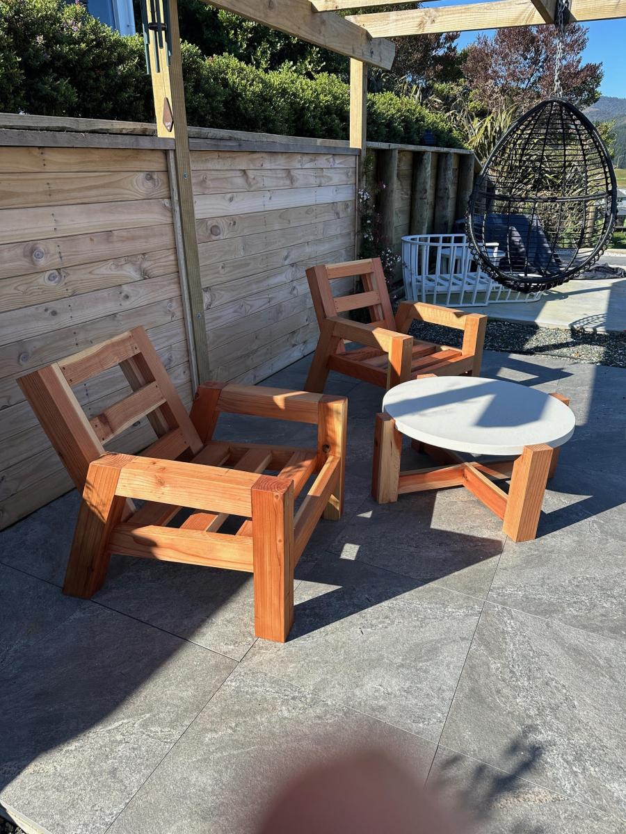 The chairs and table pictured are made from Redwood which I've used for the natural colour variation in the timber.