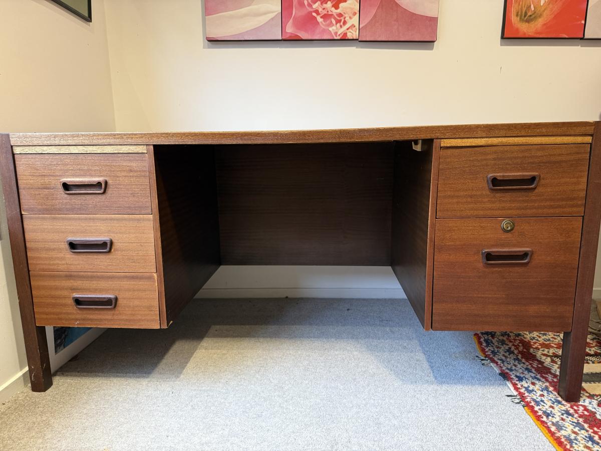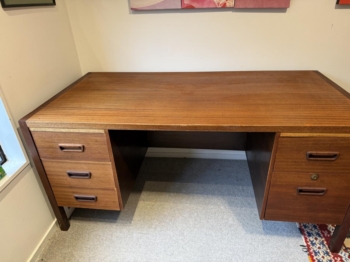 Wooden desk with 5 drawers in good condition . Dimensions 151 cm long , 75 cm wide, 73 cm high so medium to large. All drawers clean and work well. Surplus to needs . Can be picked up Stepneyvulle