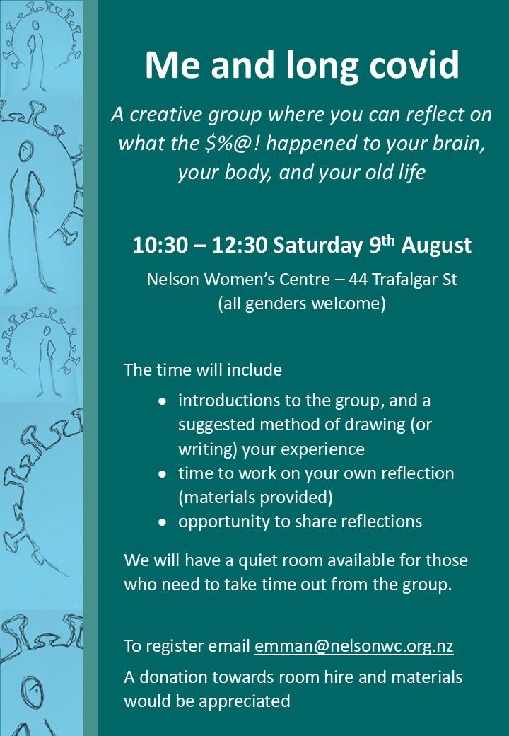 To register email: EmmaN@nelsonwc.org.nz or call Nelson Women's Centre on 03 546 7986
