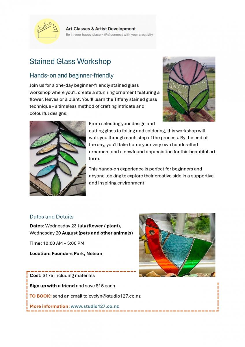 From… View moreThis is a one-day beginner-friendly stained glass workshop where you’ll create a stunning ornament featuring your pet or any other animal that's important in your life. You’ll learn the Tiffany stained glass technique – a timeless method of crafting intricate and colourful designs.
