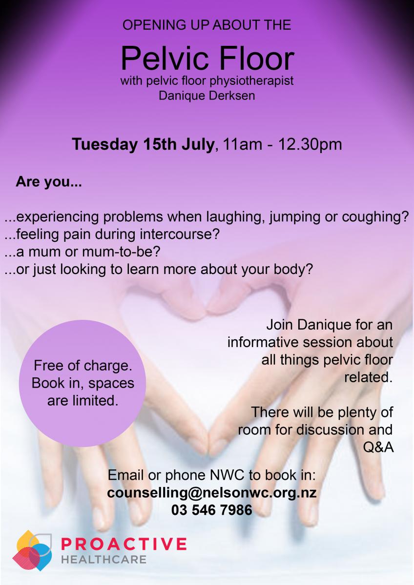 Pelvic floor physiotherapist Danique Derksen from Proactive Healthcare is hosting an informative FREE workshop on the pelvic floor.