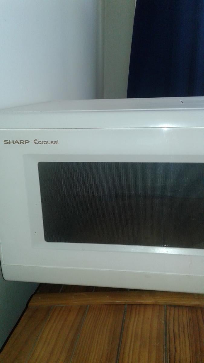 Surplus to requirements. Good mircowave.goes well. Brand is Sharp Carousel