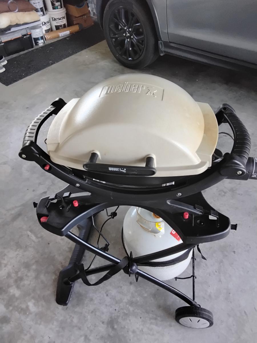 In excellent condition, has extras, 2 covers, stand, gas bottle and stainless steel rack