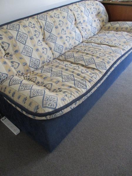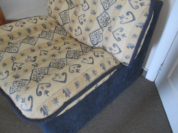 Low and comfortable three seater sofa 180cm long x 70cm high. two chairs .