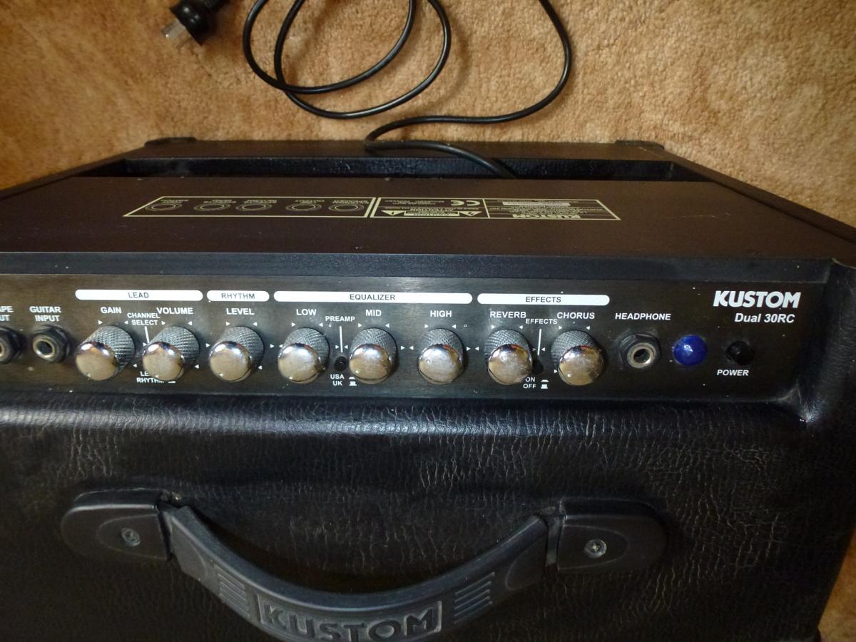 This Kustom guitar amp has 30 watts of power and a celestion 10 inch speaker also has two preamp settings (UK or USA.) Amp comes with distortion, reverb, chorus effects, three foot switchable channels, 3-band EQ, Boost switch on lead channel and… View moreNot had a lot of use and is in excellent condition