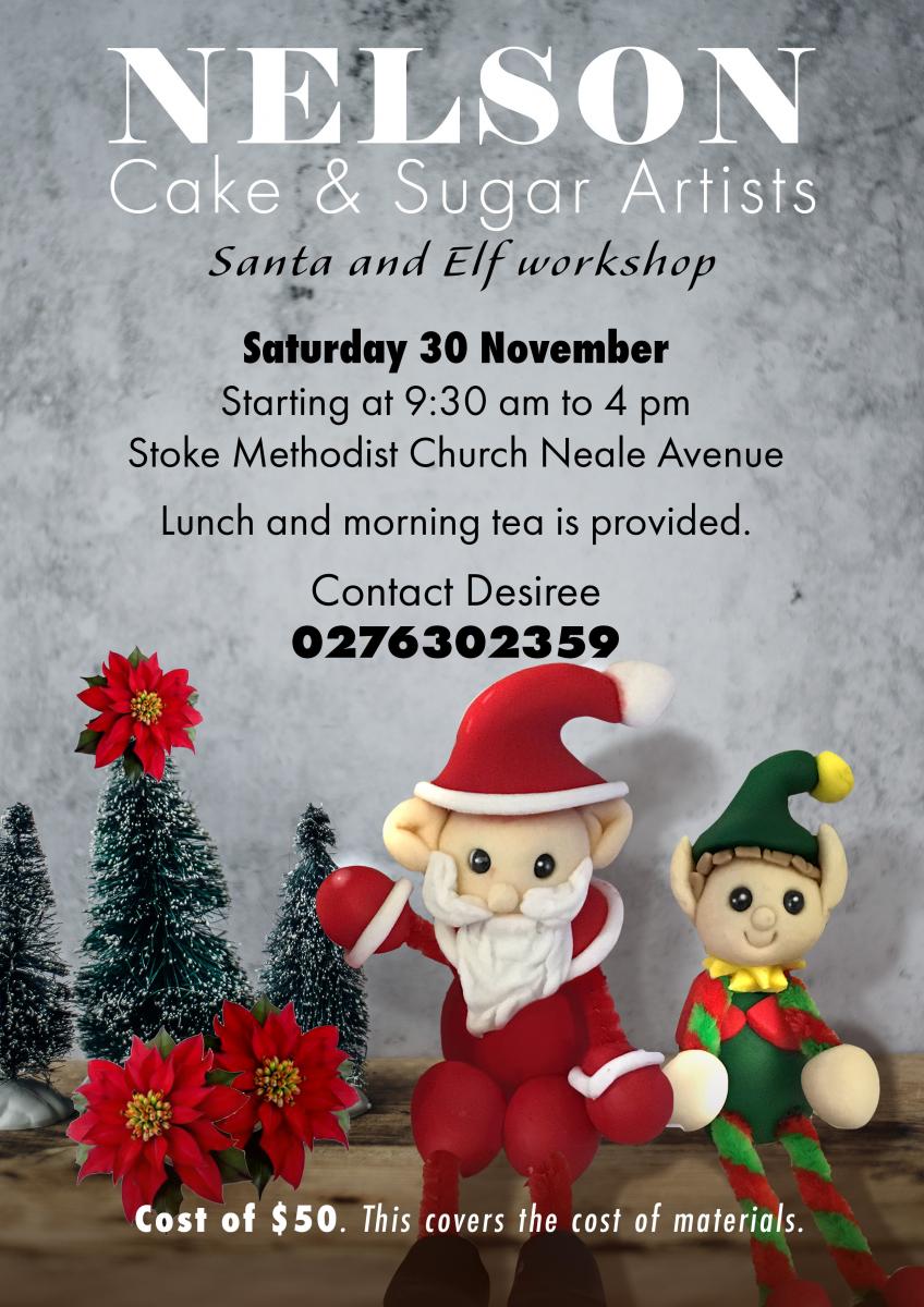 Cake Decorators are holding an all day Christmas themed workshop on Saturday 30 November. Starting at 9:30 to 4 pm. You will create a Poinsettia flower, a Santa and an Elf using sugar paste. The cost is $50 this includes lunch and morning tea. All materials to create your article will be provided.