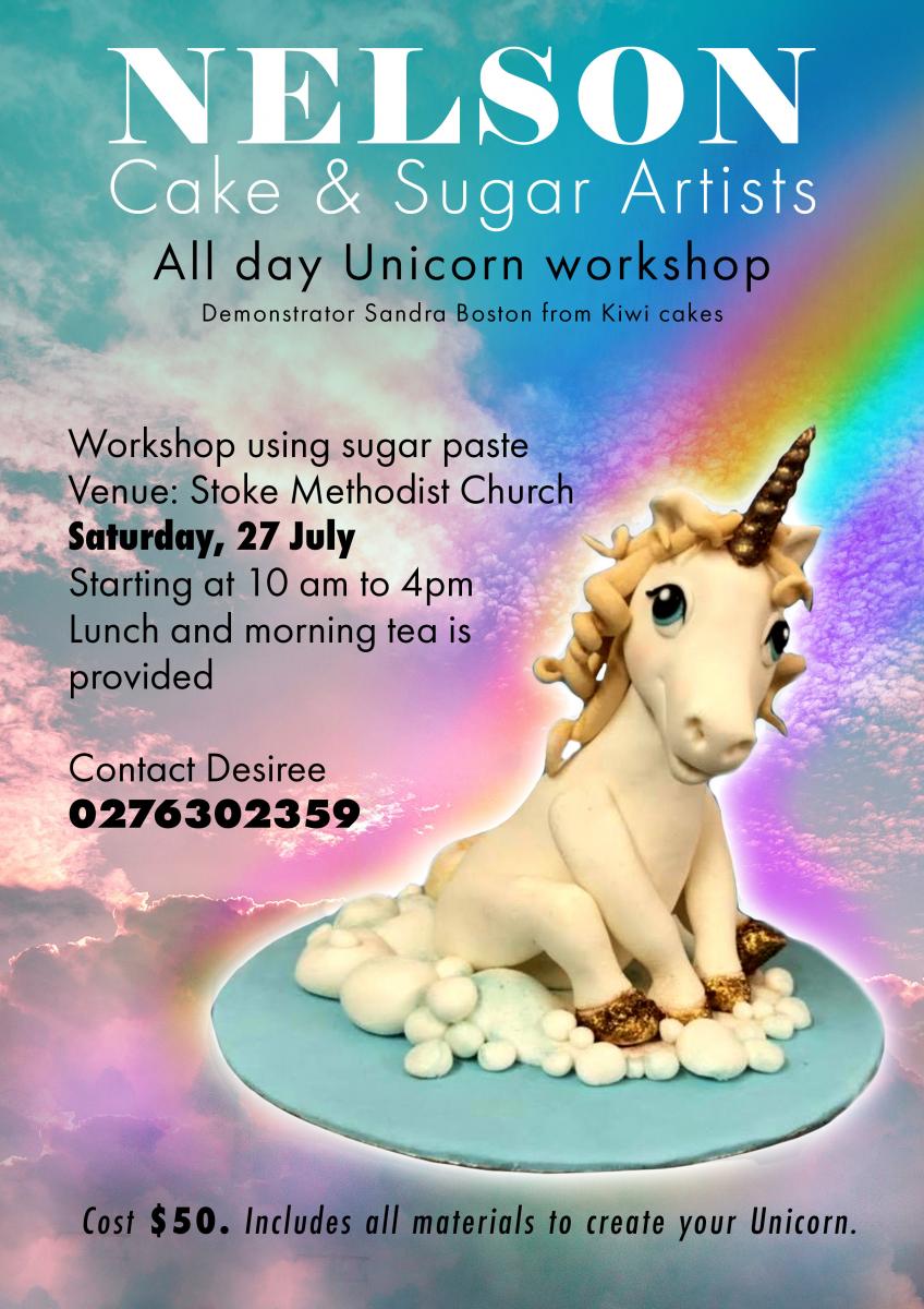 Cake Decorators are holding a whole day workshop on Saturday 27 July 10 am to 4:30 pm. You will create an Unicorn using sugar paste. The cost is $50 this includes all materials to create your Unicorn. Lunch and morning tea is provided. This workshop is open to all who are interested in creating a … View moreCake Decorators are holding a whole day workshop on Saturday 27 July 10 am to 4:30 pm. You will create an Unicorn using sugar paste. The cost is $50 this includes all materials to create your Unicorn. Lunch and morning tea is provided. This workshop is open to all who are interested in creating a Unicorn using sugar paste.Contact Desiree 0276302359