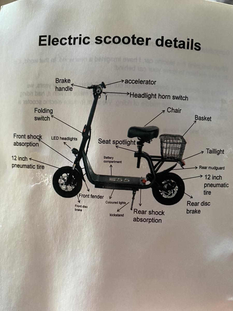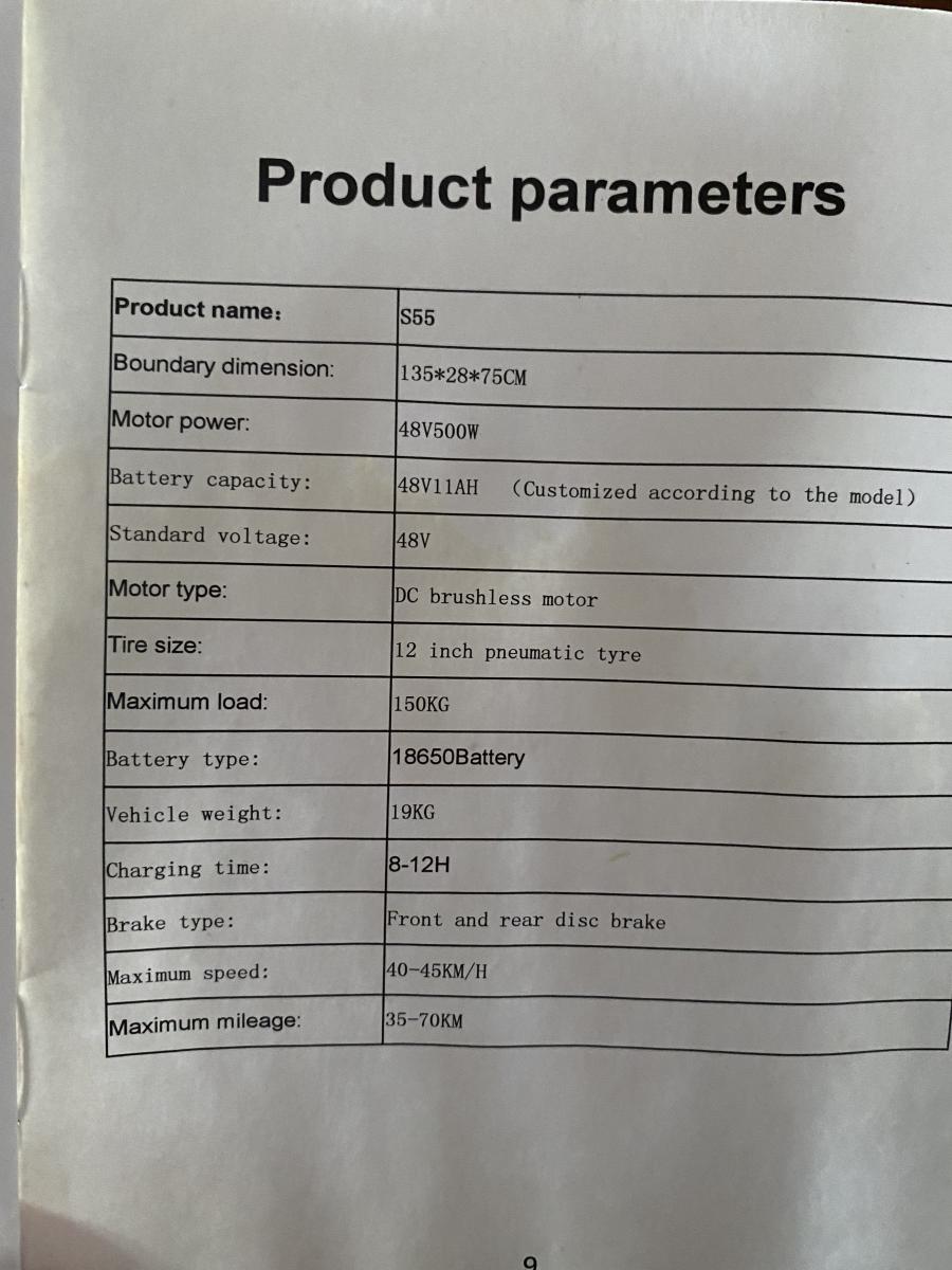 Purchased over a year ago, minimal use. Working battery and charges up well. Motor power:48V500W