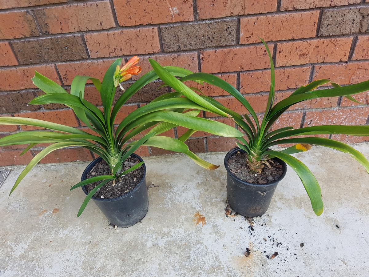 2 Orange Clivias (1 in flower, 1 not flowering)