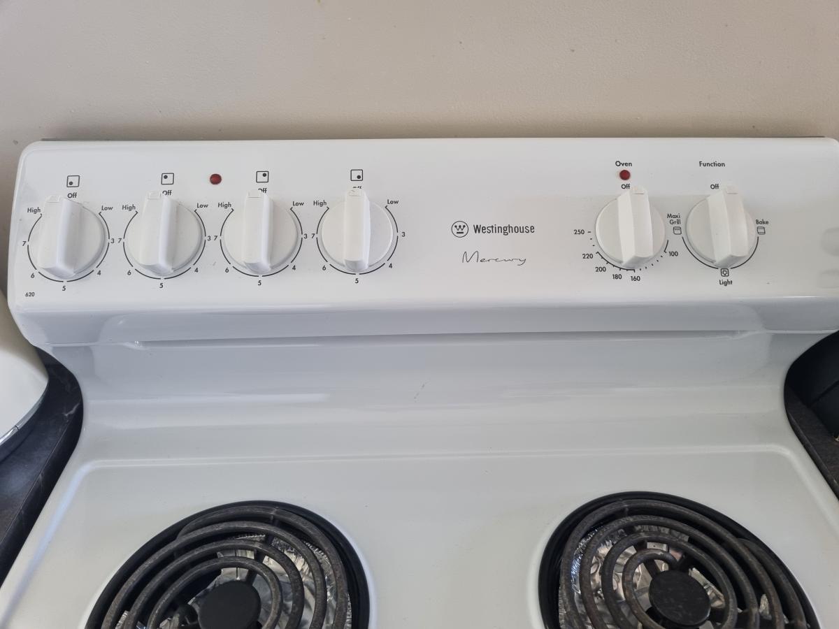 Second hand Westinghouse Mercury free standing oven for sale. None fan bake 60cm wide with two racks. Being removed as have purchased a new model with fan bake. Goes good and in good condition.