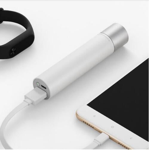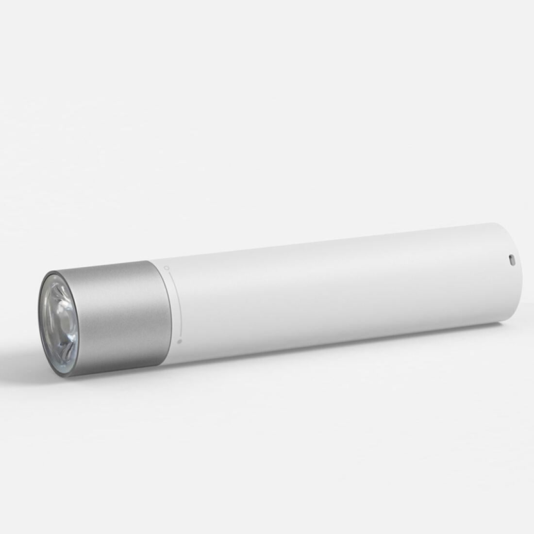 NEW Xiaomi portable flashlight is compact and comes with a cylindrical body made of premium aluminum alloy that is lightweight and sturdy. The main body of the light is white while the light head is silver. The whole design is just like a candle. Both ends of the light are covered with a circular … View moreNEW Xiaomi portable flashlight is compact and comes with a cylindrical body made of premium aluminum alloy that is lightweight and sturdy. The main body of the light is white while the light head is silver. The whole design is just like a candle. Both ends of the light are covered with a circular sticker when it arrives. Remove the stickers, we can see the Lumileds LED equipped in the light head, and the USB in/out ports as well as a function key on the tail. There is also a hole on the tail for attaching the lanyard carry strap.